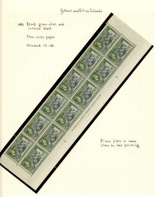 1938-51 values in mint Plate pieces with ½d block of thirty (1941 printing, supplied in half-sheets and numbered by R6/1, slight staining); 1½d bottom two rows from 1939, 1943 and 1946 printings; 2½d bottom two rows, 1946 printing; 3d bottom two rows from 1939 and 1944 printings, the former with slight staining on reverse; 1/- bottom two rows of 1939, 1943 (2) and 1951 printings, the former very scarce, with the inevitable brown gum, one of the 1943 blocks with having slight staining on reverse. Also a small group of 2d blocks and singles from the 1939, 1943, 1944, 1946, 1951, 1954 and 1955 printings. Mounting generally very sensible leaving many stamps unmounted. Excellent group for the specialist. SG 41/53ab