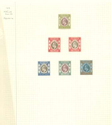 1903 Wmk Crown CA set to $10 slate and orange on blue, mounted on album leaves, with additional 4ct and $5, brilliant o.g; wonderfully fresh. SG 62-76