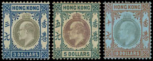 1903 KEVII set to $10 wmk crown CA, mixed condition, $2, $3 (both part og), $5 (unused, toned areas on reverse), $10 (small part og, redistributed), viewing recommended