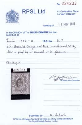 1902-11 25r brownish orange and blue, fresh large part o.g. with lovely colour. A most appealing example of this scarce stamp. RPS Certificate (2016). SG 147, £3,000