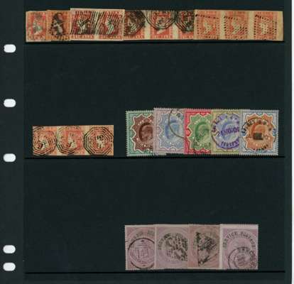 1854-1910 used collection on pages/Hagners. We note 1854 ½a blue, Die I plated range (12) noting lithographic flaws/varieties and cancellation types, 1a with representation from all three Dies including examples on cover, pairs, strip of three with 1a red Die III (pointed bust) on cover to Calcutta, 1902-09 KEVIII high values from 3r to 25r used (telegraphically) and OFFICIAL ½a mauve (SG O19, 4), mixed condition with fine, many collectable examples of these classic issues.