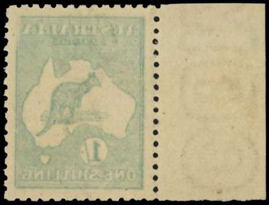 1915-27 1s blue-green, die IIB, wmk 6, left marginal example, showing complete offset of design on reverse, unmounted (hinged in margin). ASC BW33c, SG 40b VAR