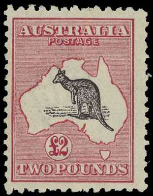 1924 £2 purple-black and pale rose Kangaroo, large part og, typical perfs for this issue, fresh appearance, SG 45b