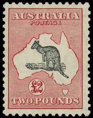 1930 £2s black and rose Kangaroo, fresh large part og, fine and rare, SG 114