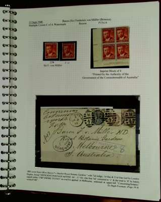 1850-2018 Comprehensive collection housed in 28 albums with an emphasis placed on completeness with miniature sheets, booklet panes, self-adhesives, coil stamps etc. collected alongside normal issues. Also, with parallel collections of Australian Territories, Christmas Island, Cocos (Keeling) Islands, Norfolk Island. Good range of Kangaroos, 1913 1d KGV in marginal block of eight with imprint and plate No1, marginal strip of 6 with imprint and plate No2, marginal pair with partial imprint and plate No3. 1913 6d Kookaburra in marginal strip of 4 with imprint and plate No1. 1929 3d Airmail in corner plate blocks of four (Plate 1,2,3,4), also marginal block with John Ash imprint. 1929 Cent. of Western Australia in blocks of four, with plate flaws, John Ash imprint, plate numbers from 1 to 12. 1931 3d Kingsford Smith in corner plate block of 6 with “Aeroplane dropping mailbag variety”. 1932 Lyrebird in marginal pair with John Ash imprint. 1932 Sydney Harbour Bridge set in marginal multiples showing John Ash imprints, etc. The same depth of collecting throughout with some additional material such as 1885 underpaid GB cover to Royal Botanic Gardens, Melbourne, with boxed “Deficient Postage” boxed handstamp, 8d manuscript in an oval “More to Pay” handstamp. An excellent source for specialist items, viewing recommended