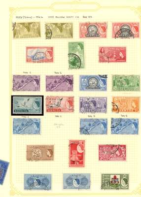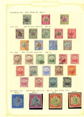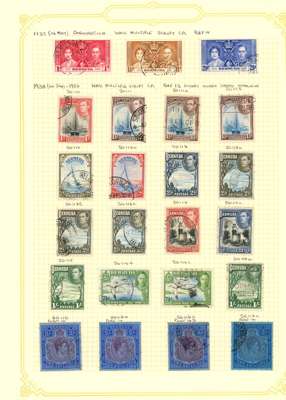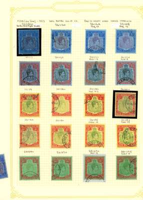 1865-1968 used collection (275, plus 16 mint) on leaves. A very good general range with SG 1-4, 5a-10a; 21-9b (3d poor); 30-51; seven KG V high-value keyplates to 5/- two with colour run; both Tercentenary sets; 1935 Jubilee; KG VI with key type range including SG 116b, 116ce (fine), 121 (2) mostly OK but a few washed or faded; Wedding; QE II basics to 1968 less SG 195, and KG VI low values mint