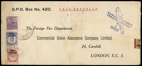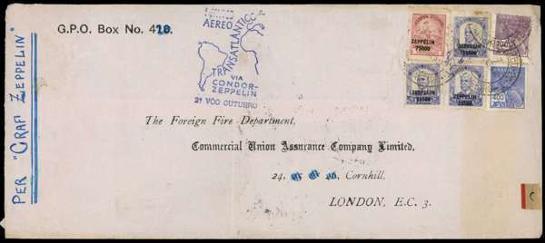 POSTAL HISTORY: 1932 Pair of large commercial Zeppelin covers from Brazil to London, both franked with Zeppelin overprinted stamps and different cachets, the smaller of the two sent 13 OC 1932, and the larger 29 OC 1932, typical condition for commercial usage