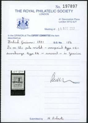 1881 '2' on 12c pale violet 'OFFICIAL', type 24 surcharge (curved foot to '2'), large part og, fine, RPS cert (2007), SG 156