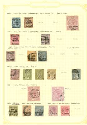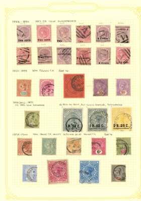 1857-1949 used collection (289) on leaves. A nice page of SG 2-58, some highly catalogued stamps, with viewing recommended; surcharges with SG 157, 162, 172-3, 1888 group with two inverts, SG 241-3, 254 (2), 255, 256-64, 265-276, 277-88, 298-9, 301-318 with shades, 338-356, 381f, etc. Mostly good