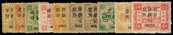 1897 (Jan) Small figure surch on Dowager Empress, set of 10 to 30c on 24ca rose-carmine, most a little toned, 30c on 24ca small corner bend, large part o.g. (cat £4500)