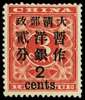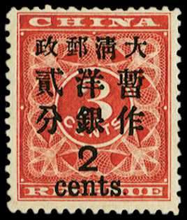 1897 (Jan) 2c on 3c deep red, large...