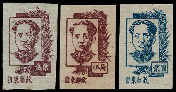 East China; Shandong 1946 (Nov) Mao Tse-tung set of 3 to $2 blue, inscribed "Shandong Postal Service", fine unused as issued