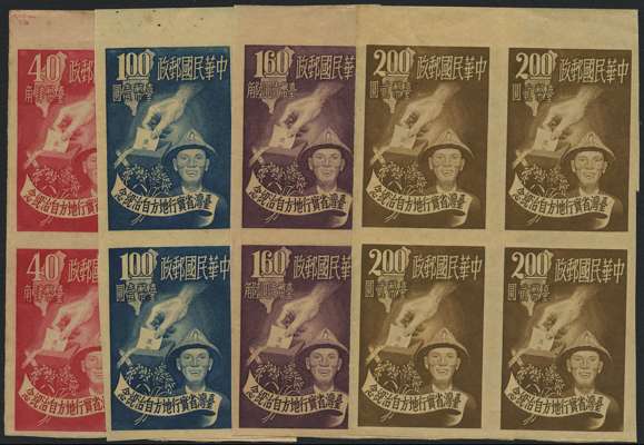 1951 (20 Mar) Division of Country into Self-governing Districts 40c to $2, set of four in imperforate blocks of four, unused without gum as issued. Fine. SG 125B/8B, £1,500