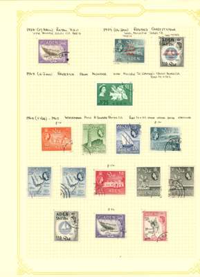 Aden 1937-65 used collection (90) on leaves with all shades and perfs per SG