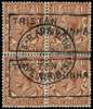 1921-2 GB 1½d block of four (rejoined) with two strikes of boxed TRISTAN DA CUNHA, and central strike of S-R ANTARCTIC EXPEDITION of My 25 1921. 284 of this value used by the expedition