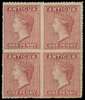 1863-67 1d QV dull rose block of 4, rough perf., wmk Small Star (upright), fresh o.g. with lower pair unmounted, ex Baillie and Toeg. Fine item, SG 6