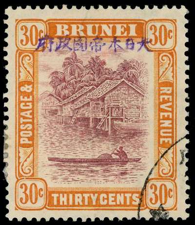 Japanese Occupation. 1942-4 30c purple and orange-yellow, fine used. SG J15, £180