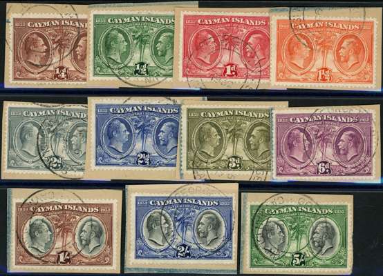193 Centenary set to 5/-, each on small piece cut from the same cover, Georgetown CDSs of DE 5 1932 (First Day). SG 84-94