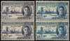 1946 Victory issue in unmounted o.g. vertical pairs, perforated SPECIMEN Type D21. Gum a little brown but of good appearance, and very scarce in any multiples. SG G17s-18, £750