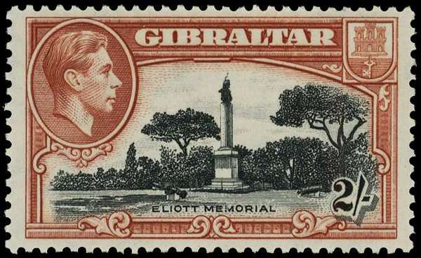 1942-51 2/- black and brown perf 13, with R9/3 'bird on memorial', unmounted o.g. SG 128bb, £900