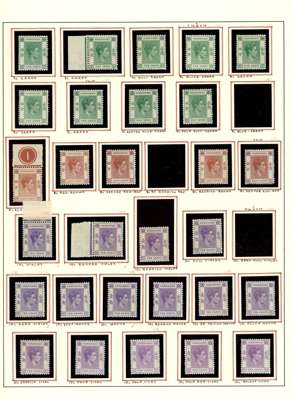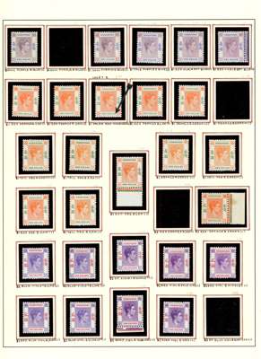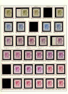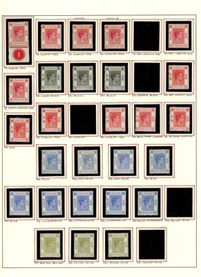 1938-52 KG VI mint collection (208) on leaves, with much unmounted. The 1938 definitives duplicated in the search for shades. Highlights include first 10c x 4 unmounted, reddish lilac x 2 unmounted, first 30c unmounted and x 2 hinged, first 50c unmounted, $1 orange and green short 'R' hinged, yellow-orange and green x 3 unmounted, $2 violet and scarlet x 5 unmounted, $5 green and violet x 2 unmounted and the yellow-green and violet (ordinary paper) hinged, a fine first $10, $10 deep violet and blue unmounted and two on chalky paper unmounted. Also Centenary set x 2 unmounted, Wedding unmounted, 10c spur on 'N' hinged, Victory extra strokes (30c unmounted), 1938 Dues and Postal Fiscal unmounted; a valuable collection
