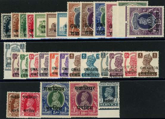 1938-45 set of thirteen, mixed hinged and unmounted o.g., white gum; 1942-5 set to 6a and further odd values including Official 1942-7 5r and 10r, unmounted o.g., cream gum. SG 105-117