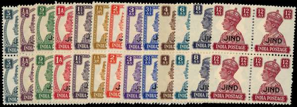 1941-3 White Background set of thirteen in unmounted o.g. blocks of four, white gum. SG 137-149, £200