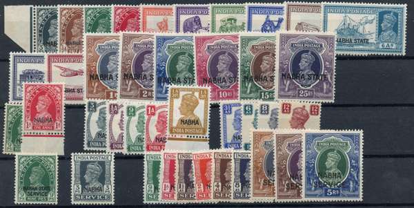 1938 set of eighteen fine large part o.g., white gum; 1942 9p and 1a (1937 designs) and 3p to 12a (9 values) unmounted o.g.; Officials 1942 2a - 5r unmounted o.g., light cream gum