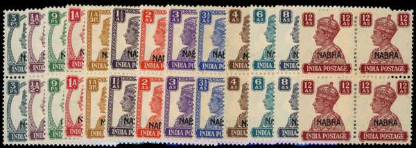 1941-5 White Background set of thirteen in unmounted o.g. blocks of four, white gum. SG 105-117, £260