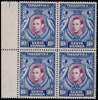 1941 10/- reddish purple and blue left marginal block of four, unmounted o.g. From the original printing. SG 149a, £240