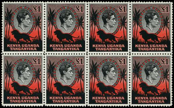 1954 £1 black and red perf 12 block of eight, unmounted o.g. SG 150b, £160