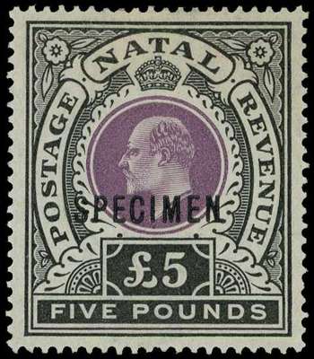 1902 £5 mauve and black, good o.g., overprinted SPECIMEN Type D12. SG 144s, £275