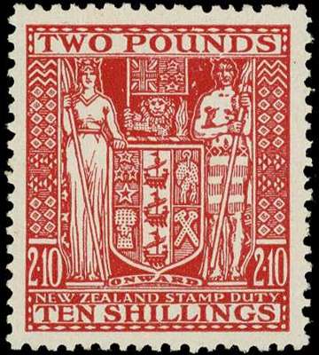 Postal Fiscals. 1951 £2/10/- red, Multiple watermark inverted, unmounted o.g. (slightly browned). Very fresh appearance. SG F207, £600