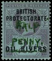 1893 ½d on 2½d handstamped Type 9 in green large part o.g., tiny gum thin otherwise fine. Clear RPS Certificate (1953, when SG 26), SG 33, £450