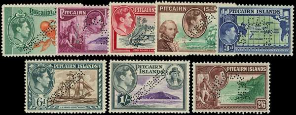 1940-51 original set of eight values perforated SPECIMEN Type W8 or B9, o.g., genuine, the 6d with a couple of nibbled perfs otherwise fine. SG 1s-8s, £1400