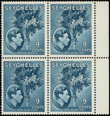 1941 9c grey-blue on chalky paper marginal block of four, unmounted o.g. SG 138a, £152