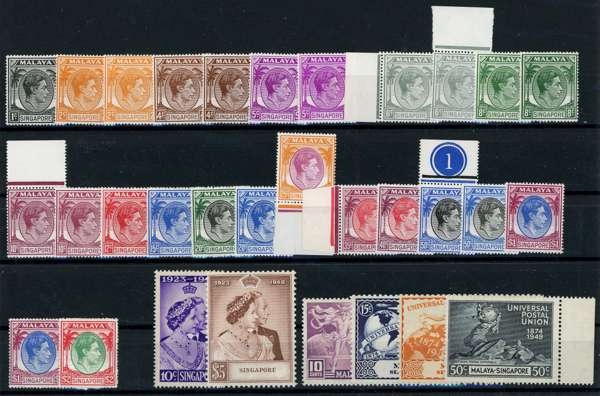 1949-52 perf 17½ x 18 set to $2 plus eight good shades per CW listing, also the silver Wedding pair and UPU set, unmounted o.g. SG 16-29, 31-6