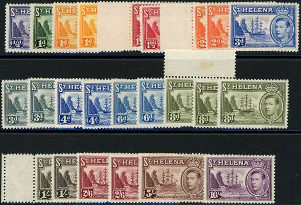 1938-44 set of fourteen plus CW-listed shades to 2/6d (ten extras), including the startling 1d deep yellow, unmounted o.g. SG 131-140