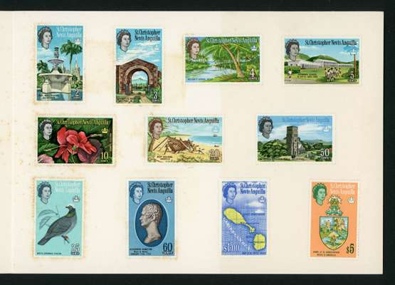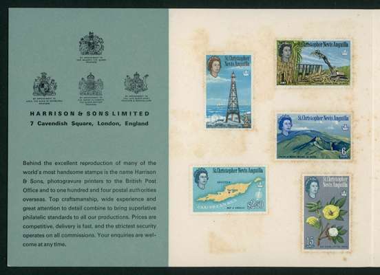 1970 Harrison and Sons promotional folder with QEII definitive series to $5 inside, small areas of foxing affecting some stamps