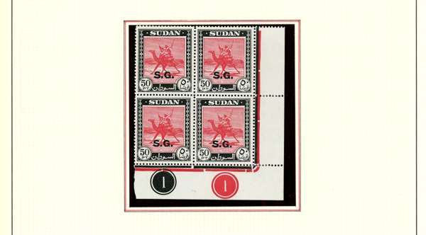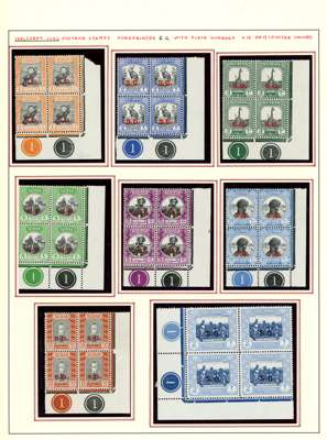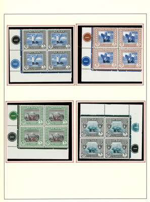 1948 set in Plate blocks of four (not matched), fine o.g. with most of the blocks hinged on the selvedge; on the 10m and 15m the hinges have encroached onto the adjoining stamps. SG 123-139, £480