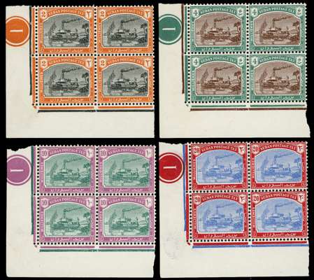Postage Dues. 1948 set of four in lower left corner blocks of four with Plate 1, unmounted o.g. SG D12-14, £260