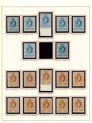 1933-54 mint collection (188) on leaves. 1933 set (10/- toned), then a study of the shades of the 1938 set, first perfs to 10/- (4, 2 unmounted), second perfs a good range with many unmounted
