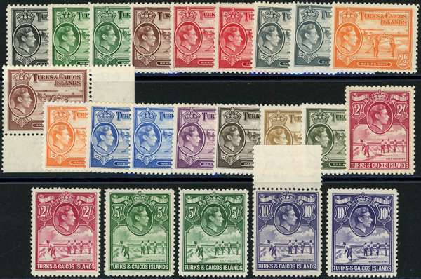 1938-45 definitive set with all shades and perfs per SG and CW, unmounted o.g. (23 stamps), fine. SG 194-205, £260+