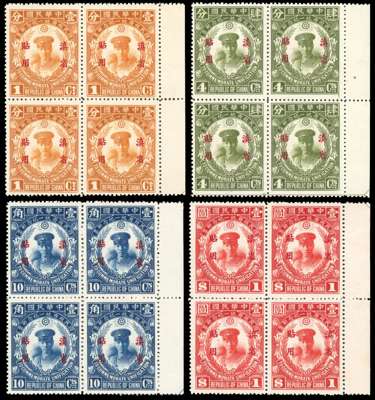 China Yunnan Province 1929 Unification set of 4 blocks of four never hinged