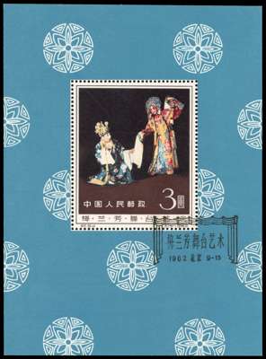 1962 Stage Art of Mei Lan-fang miniature sheet, used, cancelled with by Peking Special handstamp. Fresh colour and large part o.g. on the reverse, only 20,000 issued, fine and very scarce SG MS2044a Yang C94M