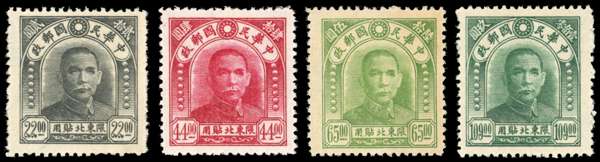 1946-48 North East provinces 1946-48 Sun Yat-sen re-engraved type $22 black $44 crimson, $65 yellow-green and $109 blue-green, fine unused. SG 34/5, 37, 39