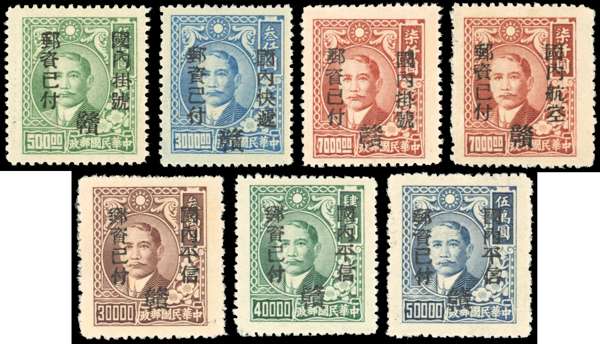 China 1949 Kiangsi Province 'Unit' set of 7 overprints unused