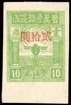 China PRC Regional North China 1946-47 Shanxi-Hebei-Shandong-Henan Border Area $0 0n 10 ($1) a bottom marginal unused without gum