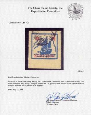 Huanin Area: 1943 (Dec) machine surcharge $1 on 30c on (-) ‘Junk' blue, a fine used example of this sldom seen rarity, with 2008 CSS cert (Yang EC221) SG EC186