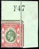 1912-21 $5 green and red/blue-green, OLIVE BACK, wmk MCA, upper right corner example with requisition "F", unmounted o.g. Minor traces of rubbing mentioned strictly for accuracy, nevertheless a wonderful example of this oft mis-identified printing, highly desirable and extremely rare in this proving positional form and condition. SG 115b cat £1300